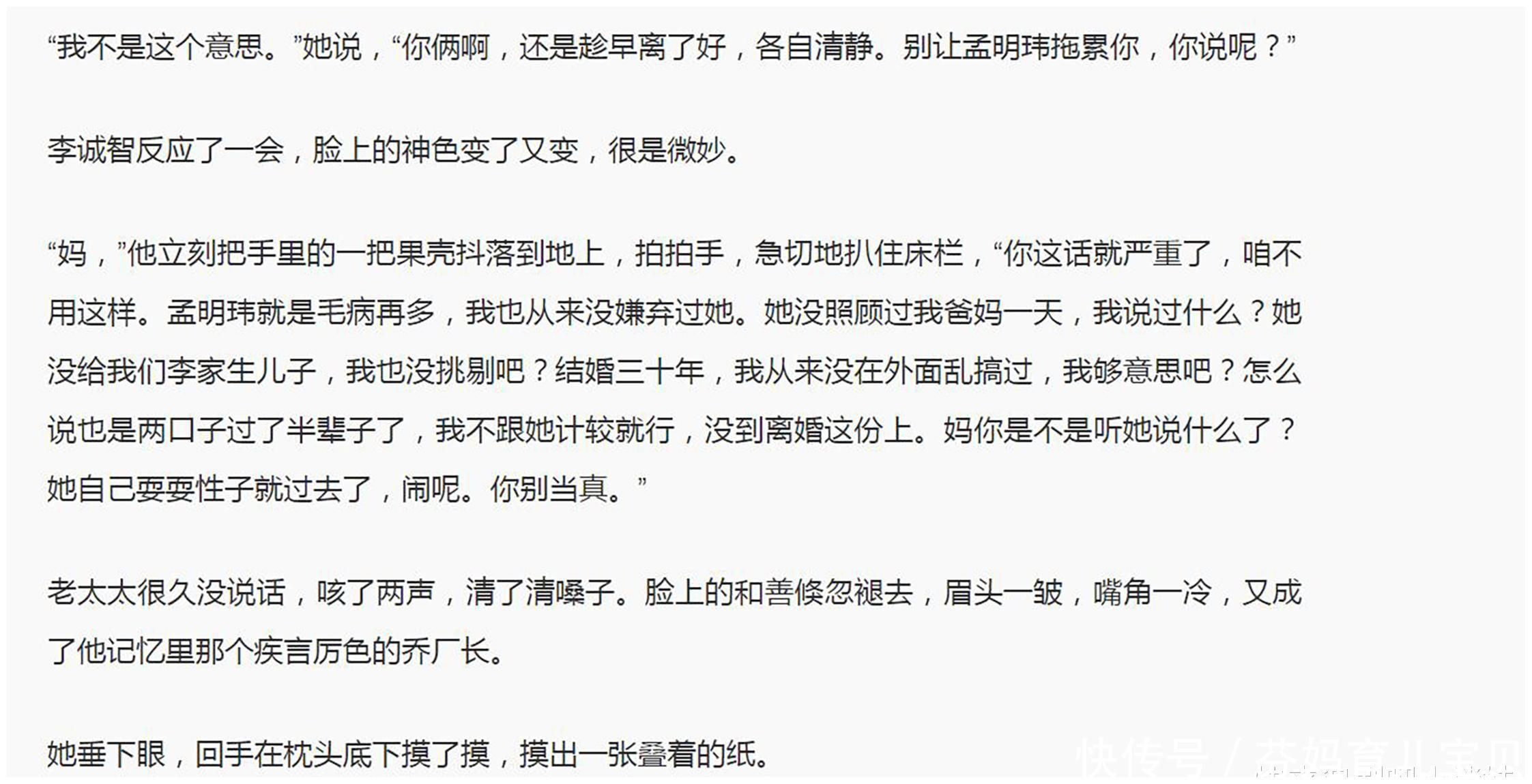 李衣锦成就前,李家爆发了大战。       因过年去农村婆家,如故留在娘家,透澈揭开了李诚智谬误的面具,他对怀有身孕的配头大打脱手。       原演义里,乔厂长莫得泼妇骂街,更莫得歇斯底里,先安抚好犬子,再提着加料的鱼汤去“致意”大东床,把东谈主放倒之后,将他五花大绑,任由他自生自灭。铁腕气派诚然给犬子出气了,也为犬子厄运婚配埋下伏笔,从此之后李诚智开启了冷暴力,责骂打压配头,无视犬子。 原演义,孟明玮在犬子的饱读舞下,决定离异,但她们母女仅仅糜掷,李诚智根蒂不可能答理,他在城里莫得房产,也莫得退休金,离异对他而言莫得任何克己,还不如持续趴在孟明玮身上吸血,来的放浪安逸。       犬子离异无果,躺在病院养痾的老太太,躬行出马。